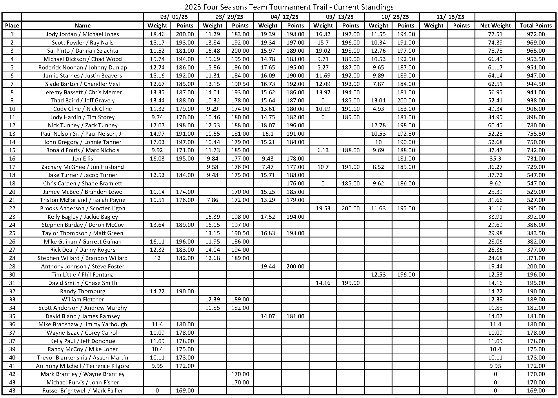 Thank you to everyone who came out to fish this past weekend. Congrats to team Baird / Gravely who came out on top with 13.01 lbs.